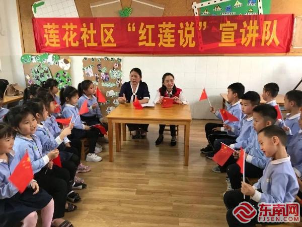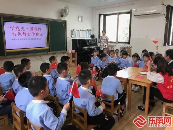 东南网龙岩5月7日讯 (通讯员 章义曼)读书能提高人的文化素质和精神修养,从小养成读书的习惯,将为幼儿的一生累积最宝贵的财富。为进一步贯彻落实习近平总书记来闽考察重要讲话精神,铭记革命历史,传承革命精神,扎实开展党史学习教育和“再学习、再调研、再落实”活动。近日,龙岩市新罗区莲花社区“红莲说”宣讲队走进富健幼儿园开展 "学党史·感党恩 红色故事你我说"系列主题活动,带领孩子们一起认识党旗国旗,一起学习党的历史,激发孩子们的爱国情怀和民族自豪感。