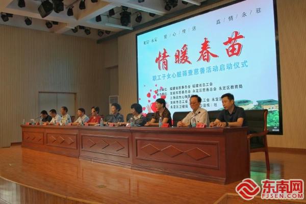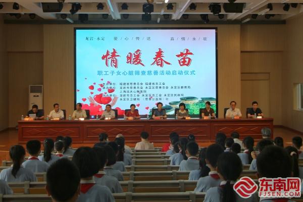 永定区“情暖春苗”职工子女心脏病筛查慈善项目启动仪式现场 据悉,“情暖春苗”活动项目接地气、效果好、社会关注度高,现已从慈善组织独自运作扩展至教育、医疗等中多部门共同参与、合作的慈善救助项目。该项目从2017年8月启动,主要面向对象是福建省贫困先心病患儿,已为我省顺昌、武夷山、平潭、蕉城、武平、光泽、长汀、柘荣等县(市、区)近30多万名在校学生进行心脏筛查,成功救治近300多例手术,成功率达100%。