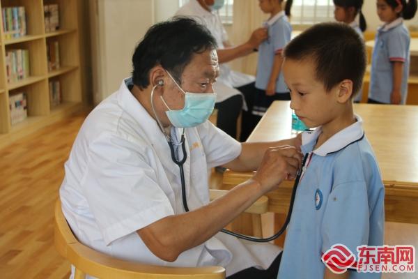 永定区城南小学学生代表上台发言 启动仪式结束后,上海远大心胸医院的医疗专家组携带先进检测仪器为永定区城南小学的学生开展实地免费筛查,确定符合救助条件后,可分别向龙岩市慈善总会或永定区慈善总会申请“心动八闽”医疗救助项目,并得到后期手术治疗上的援助。在接下来的一个多月时间里,上海远大心胸医院的医务人员将深入永定区的各个学校为孩子们进行心脏健康筛查。