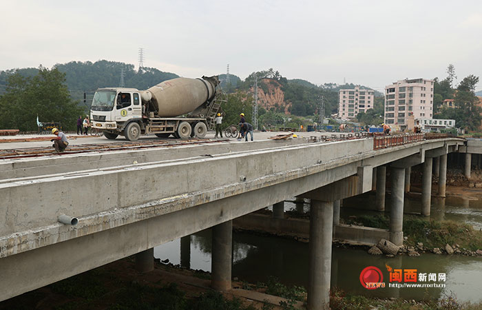 东南网龙岩11月26日讯 据闽西新闻网报道 近日,永定区书院沿河大道新寨大桥施工正在进行中。该大桥长119.62米,主跨桥宽30米,预投资1500万元,2020年9月30日开工,预计2022年3月底竣工。该大桥的建成将为重大项目、新工业项目的引进奠定良好基础,同时,缓解交通压力,提升人居环境。