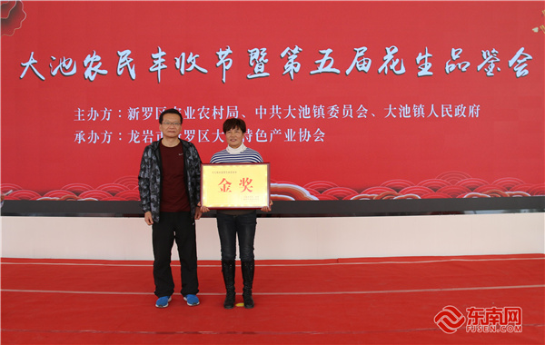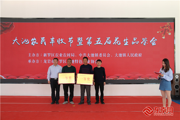 图为为第五届花生品鉴会一等奖得主颁奖。
