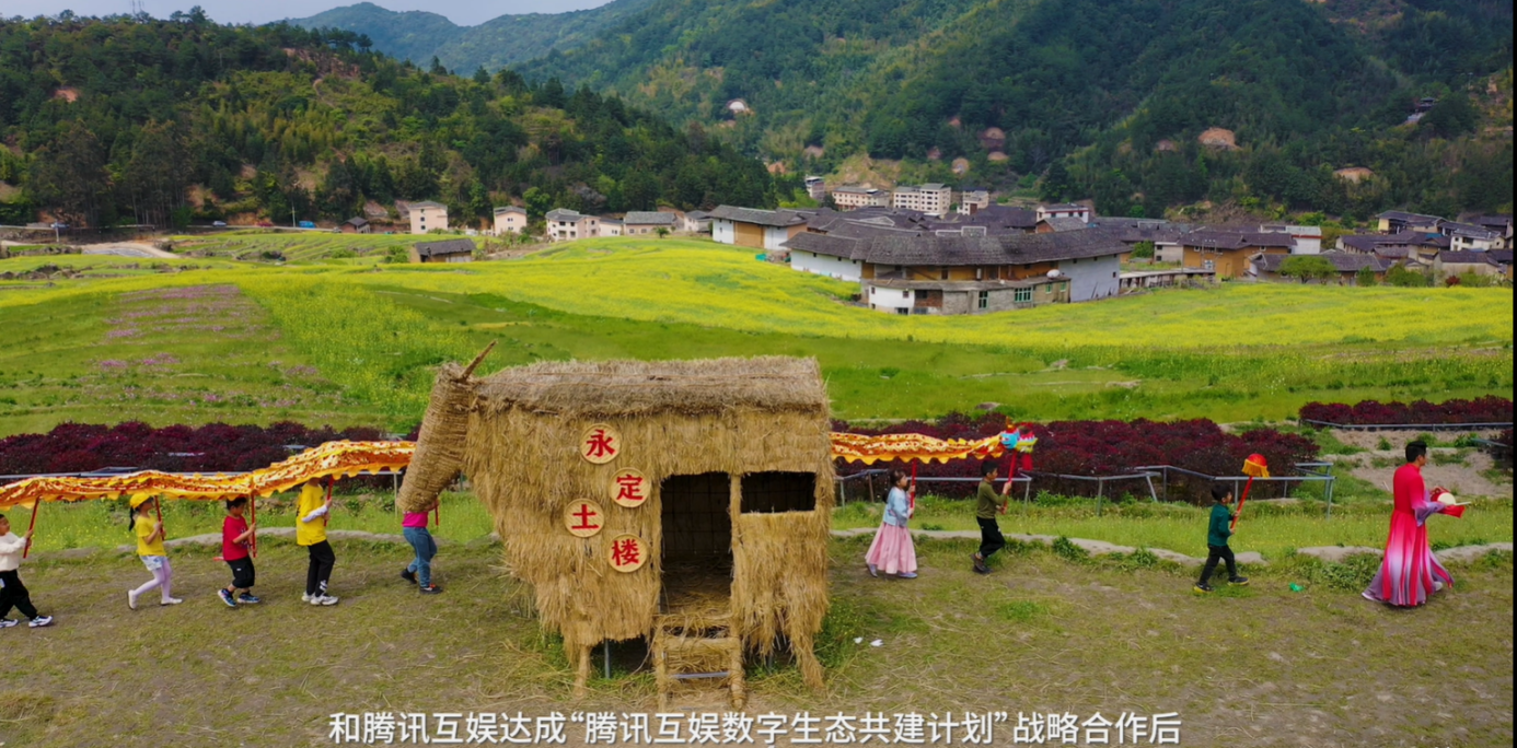 “永定土楼×《天涯明月刀》”战略合作,作为福建省龙岩市永定区人民政府和腾讯互娱达成“腾讯互娱数字生态共建计划”战略合作后,落地的第一个乡村旅游电竞数字文旅体验项目,力求通过“沉浸式剧场+国风电竞民宿+国风走秀表演及周边衍生业态”的多样形式,借助于数字IP与数字化技术融合和活化传统文化,助力乡村旅游产业发展,实现数字IP正向价值的输出与外放。