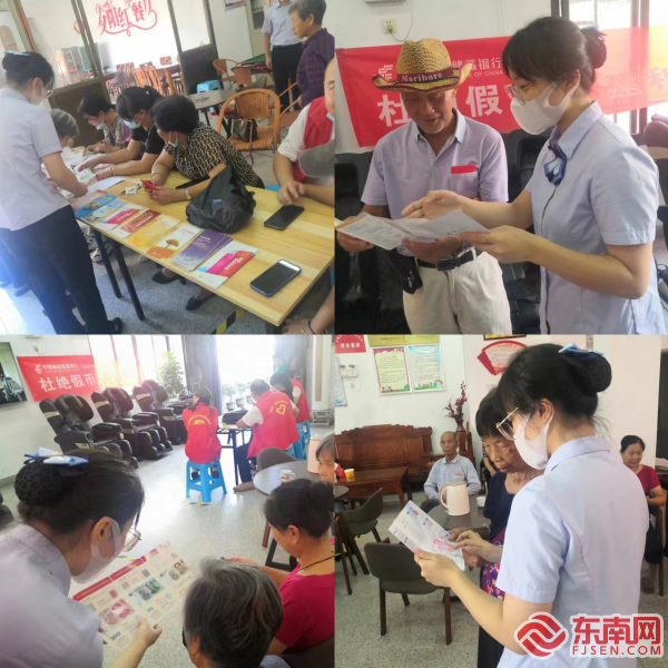邮储银行连城县支行工作人员在网点向客户讲解人民币知识 二、对外积极开展反假币宣传9月初,邮储银行连城县支行积极组织人员到连城县时代广场开展以“杜绝假币 共建和谐”为主题的反假货币宣传活动,现场通过悬挂横幅、发放宣传折页、向社区群众和商户讲解反假货币知识、一对一解析宣传折页等方式,扩大受众面和客户群体。 9月29日,邮储银行连城县支行组织人员到连城县莲峰镇南街社区老年人日间照中心开展反假货币宣传,向现场老年群体讲解“第五套人民币公众防伪特征、假币犯罪分子的作案特点、谨防假币陷阱”等,切实让更多老年人了解到假币的危害,提高假币鉴别能力和反假货币意识,得到了现场群众的一致好评。
