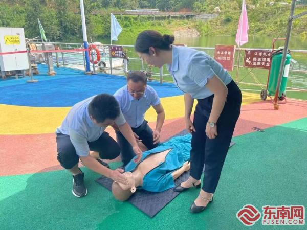 东南网龙岩8月30日讯(记者 邱妤 通讯员 苏河丰 苏强瑛)近日,永定区交通运输局联合区应急管理局、区龙湖保护与发展中心、永定龙湖航运有限公司等单位,在龙湖开展2023年水上交通安全应急救援演练。 此次演练以“安全第一、预防为主、综合治理”为方针,结合龙湖库区水上旅客运输安全的特点,设置了消防安全演练、故障客船旅客转移、遇险客船施救、落水人员心肺复苏施救等紧急情况的救援演练。