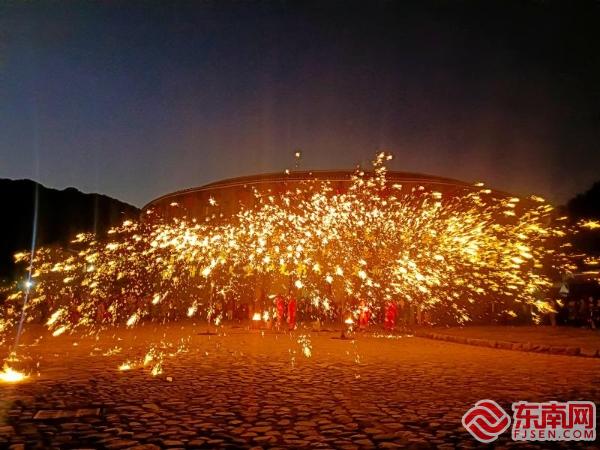 福建土楼王子景区非遗“打铁花” 璀璨贺新春
