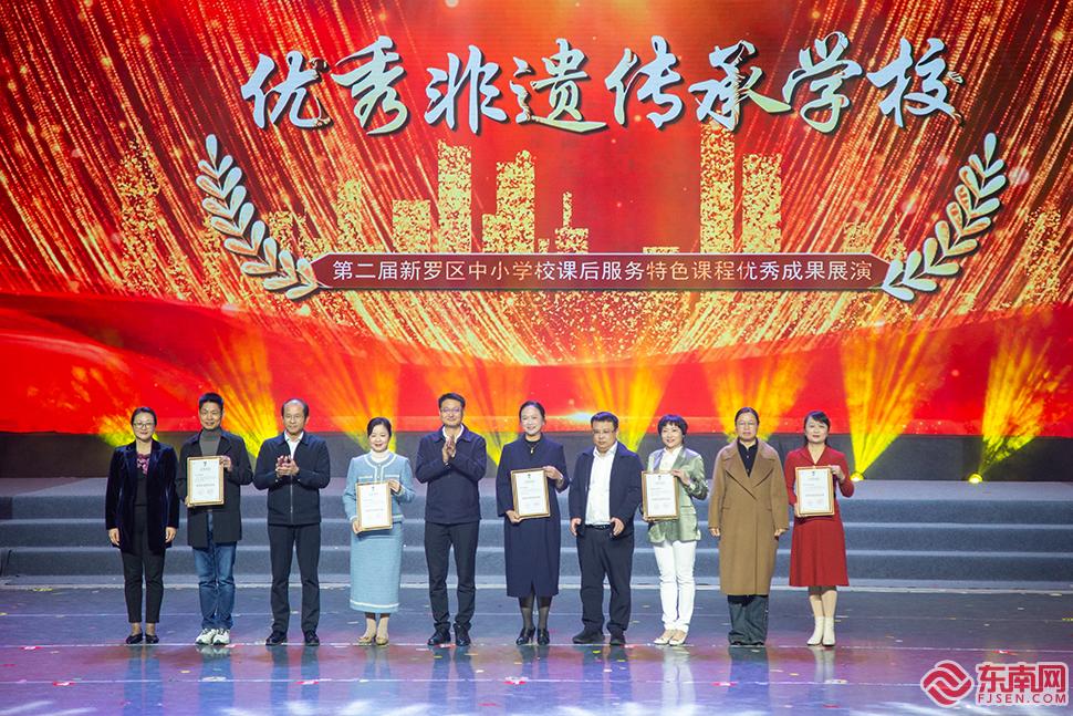 东南网龙岩12月1日讯(本网记者 马伊骅 文/图)多彩非遗进校园,文化传承润童心。11月30日晚,新罗区第二届中小学校课后服务特色课程优秀成果展演在龙岩市侨声剧院举办。