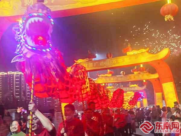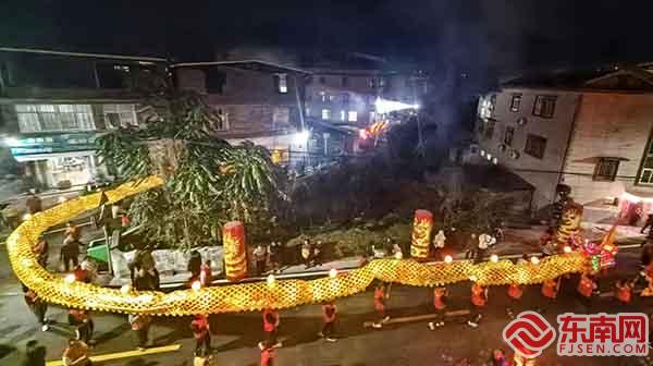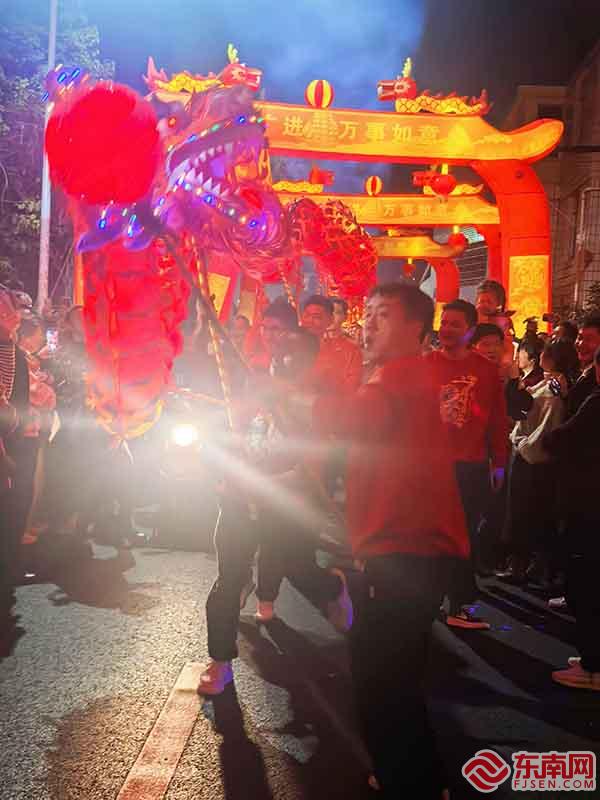 东南网龙岩2月13讯(通讯员 王杰森 张丽芳 本网记者 刘龙海)祥龙献瑞贺新春,锣鼓喧天闹元宵!为传承传统文化,丰富民俗活动,让群众感受元宵节喜庆氛围,2月12日晚,新罗区东肖镇联邦村举办游龙闹元宵活动,展现传统年俗文化魅力,展示乡村振兴新气象,并融入创新元素,营造出浓厚的节日氛围。