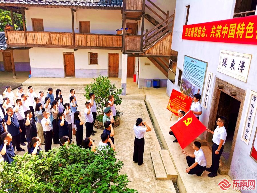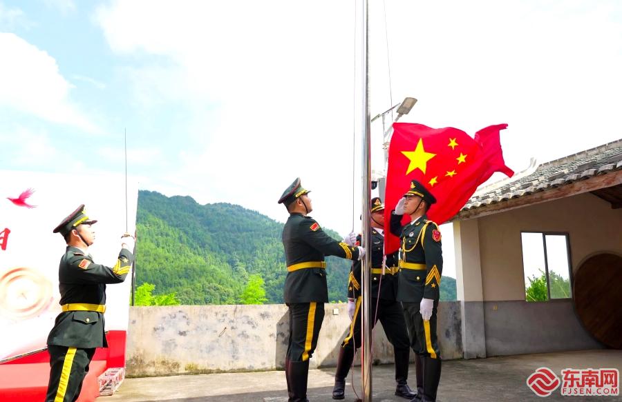 东南网龙岩7月1日讯(记者 江雅萍 通讯员 谢湾塆)7月1日,喜迎中国共产党成立104周年,“红心向党,致敬国旗”退役军人国旗护卫队升旗仪式在龙岩市永定区抚市镇泽东楼升旗广场举行。