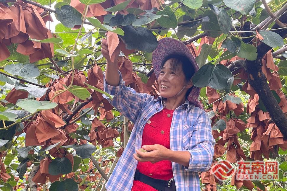 武平县民主乡坪畲村的猕猴桃种植基地里,猕猴桃藤蔓上挂满了饱满圆润的果实,果农何国锋夫妇正穿梭在藤架间,熟练地采摘成熟的猕猴桃。武平县融媒体中心供图