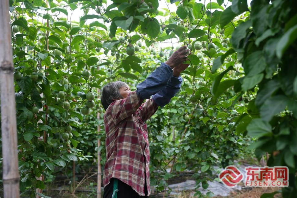 长汀县南山镇建丰农场的百香果种植园里,连片的藤蔓间,饱满的百香果挂满枝头,工人们正忙碌地穿梭其中,精心挑选、采摘成熟的果实。长汀县融媒体中心供图