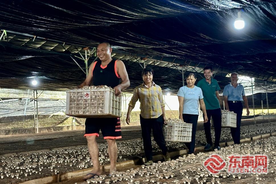武平县东留镇封侯村的香菇种植基地里,菇农们手提装满鲜嫩香菇的筐子,脸上洋溢着丰收的喜悦。今年,武平县香菇种植规模达 1500万袋,预计总产值约1亿元。武平县融媒体中心供图