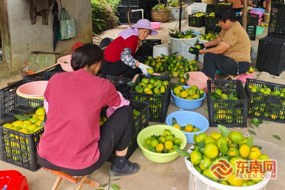 新罗区大池镇合甲村早蜜桔丰收,几位农户正忙碌着分拣柑橘。各色容器里装满了黄绿相间、带着新鲜枝叶的柑橘,农户们仔细挑选、分类,为柑橘的后续销售等环节做准备。新罗区融媒体中心供图