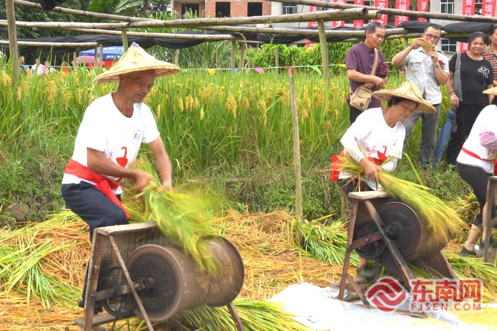 漳平市溪南镇碧潭村村民们撸起袖子,手拿镰刀,在丰收的田野里收割稻子、打稻子。独具特色的“菌稻轮作”农业发展模式,让村民们享受丰收的幸福感和获得感。漳平市融媒体中心供图