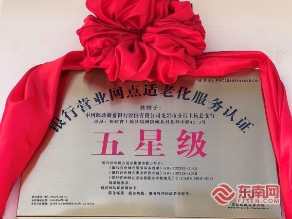龙岩首家获评!邮储银行上杭县支行获评“银行营业网点适老化服务认证五星级网点”并正式揭牌