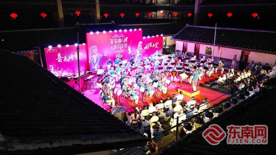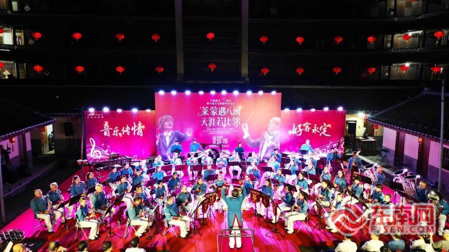 东南网10月21日讯(记者 江雅萍 通讯员 熊川 陈景彬 谢湾塆)10月20日晚,龙岩市永定区大溪乡大溪村镇江楼内灯火璀璨,瑞士日内瓦州立管乐团70余名成员在此献上一场跨越国界的交响盛宴。作为中瑞建交75周年暨中瑞文化和旅游年重要活动,此次演出以“土楼为幕、音符为桥”,在联合国教科文组织世界文化遗产地奏响中西合璧的华彩乐章。