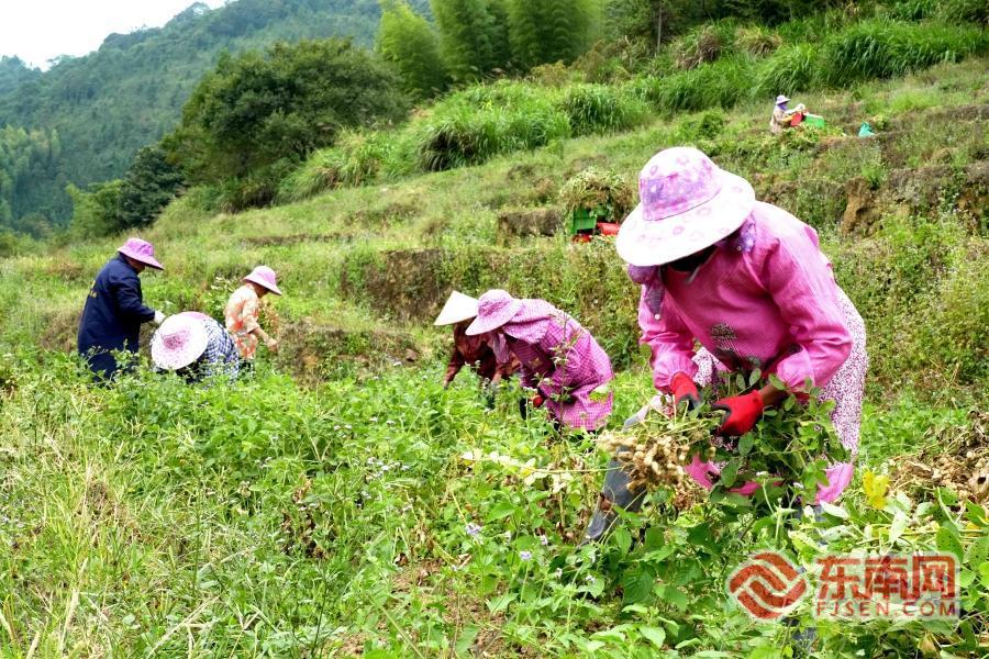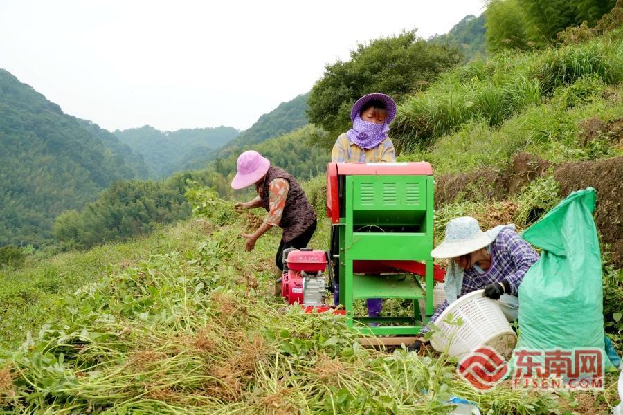 东南网龙岩11月5日讯(记者 江雅萍 通讯员 黄秋萍 林新腾 姜淇议)11月4日,走进永定区培丰镇上和村的花生种植基地,连片的高山梯田郁郁葱葱,村民们微微弯腰,熟练地将花生株连根拔起。翠绿的花生秧被轻轻拔出,根部挂满了沉甸甸、圆润饱满的花生果,轻轻一抖,附着在花生上的泥土便簌簌落下,露出色泽鲜亮的花生。