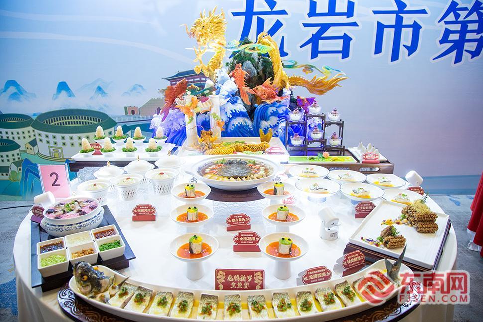 当日,经过激烈角逐,“龙腾新罗”全鱼宴荣获“全宴奖”金奖,长汀县的鸿运当头获得热菜类金奖,新罗区的独占鳌头(甲鱼佛跳墙)、长汀县的多子多福分别获得羹汤类和小吃类金奖,连城县的金鸡朝旭(四喜鸭肉饼) 获得主食类金奖。此外,大赛还依据网络投票结果评选出网络人气奖,并评出优秀组织奖等奖项。