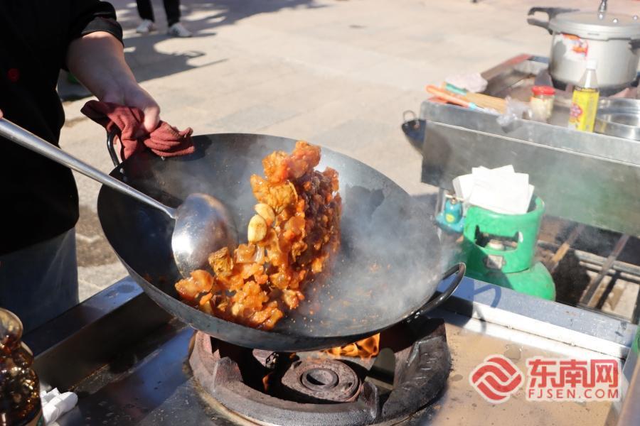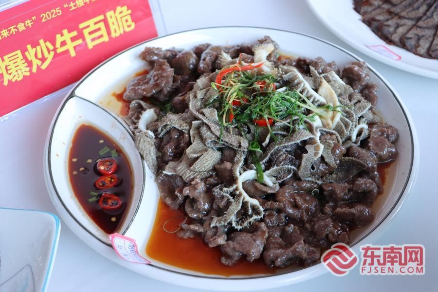 东南网龙岩11月24日讯(记者 江雅萍 林雯)11月22日下午,龙岩市永定区湖坑镇土楼风情街香气弥漫,2025“土楼牛王”美食大赛正式启幕。来自龙岩的25家代表性餐饮企业同台竞技,白灼牛肉、白切牛腩、爆炒牛八脆、红烧牛蹄筋、牛肉丸汤......参赛厨师们现场各显身手,赋予了牛肉千变万化的美味形态。