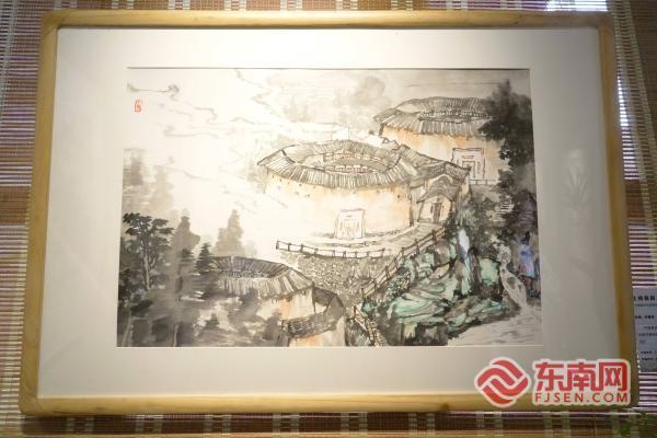 展览现场,《永定洪坑土楼群》《永定洪坑即景》《初溪烟翠》《永定区新南村客家土楼群》《永定龙湖》《土楼夏韵》等佳作引得观众纷纷驻足流连。画作之中,既有承启楼“四环相绕、气势恢宏”的壮阔图景,也有初溪土楼群“依山傍水、与自然共生”的灵动意境;既以细腻笔触勾勒中西合璧的建筑智慧,更以写意笔法传递客家人“崇文重教、开拓进取、坚韧包容”的精神内核,让每一幅作品都成为承载客家文化的鲜活载体。