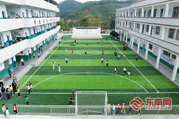 东南网龙岩12月5日(本网记者 马伊骅 通讯员 陈荣香 谢思棋 石明辉)场地焕新颜,活力满校园。近日,武平县武东中心学校新建好的运动场洋溢着运动的活力与欢笑。篮球场上,学生们正在练习抛球、接球;足球场上,学生们在体育老师的指导下正专注练习控球、带球、传球。随着运动场改造和五人制足球场建设项目的全面竣工,这所乡村学校的体育设施实现了质的飞跃。 “这个草地像绿色的‘地毯’一样,在这里摔倒也不怎么疼,家里人更放心了。”武东中心学校五年级学生刘芯兰每天放学后都会和同学们一起运动,看到新的体育设施,她很是开心。