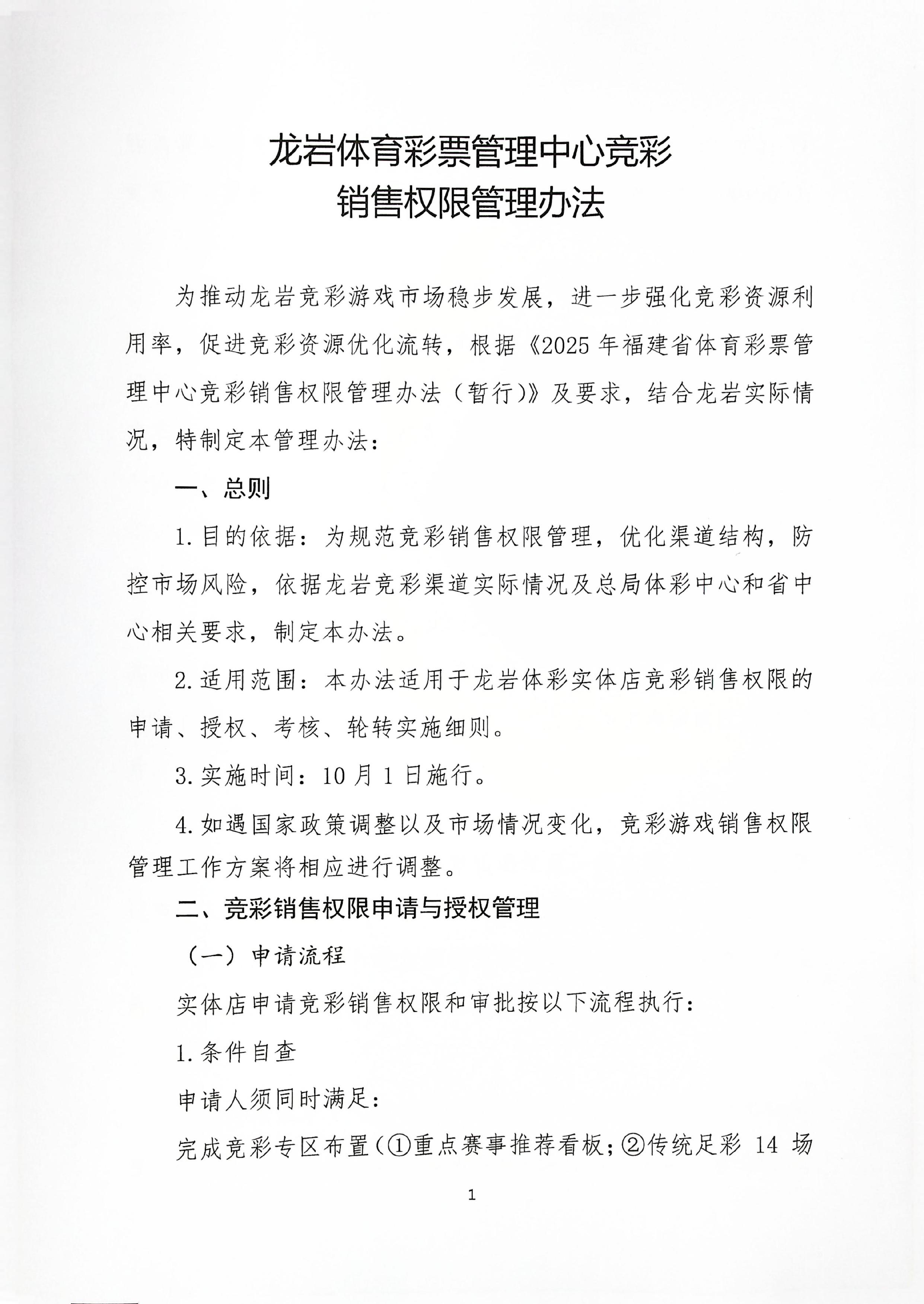 公告:2025年龙岩体育彩票管理中心竞彩权限管理办法