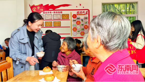 当天上午9时30分,双溪村村部广场上早已人头攒动。几口大锅一字排开,锅内腊八粥翻滚沸腾,红枣的甜、桂圆的香与糯米的糯在氤氲热气中交织,化作一缕缕诱人的香气,驱散了冬日的严寒。志愿者们穿梭在留守老人群中,将一碗碗热气腾腾的腊八粥递到老人的手里。老人们围坐在一起,喝粥、拉家常,欢笑声伴着锅里的咕嘟声,交织成一曲冬日里最动听的“邻里和谐曲”。
