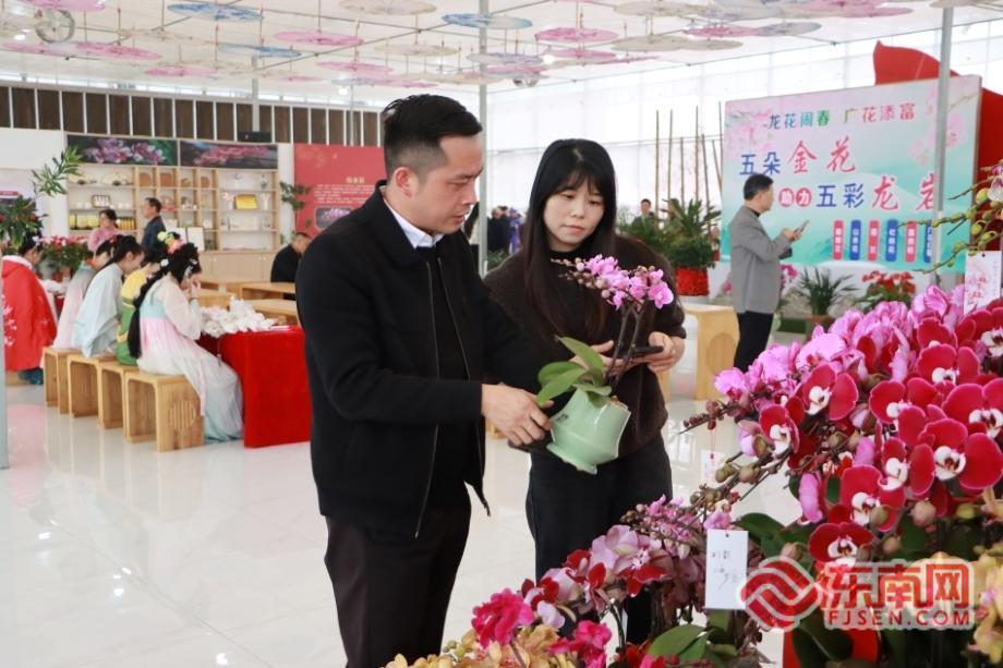 在龙潭镇蝴蝶兰综合展示中心,“花样”集市里,龙岩“五朵金花”——龙岩山茶花、龙潭蝴蝶兰、武平富贵籽、连城杜鹃花和广州红掌共同亮相,跨区域联展联销的模式,成为市民游客“一站式”选购年宵花的优选之地。