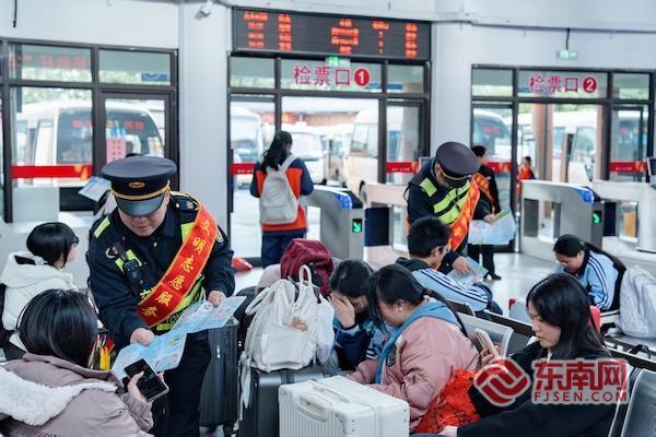 东南网龙岩2月2日讯(通讯员 黄水林 李聪妹)春潮涌动,归心似箭。2月2日,2026年春运大幕正式拉开,为期40天的归途守护之旅同步启程。连城县交通运输局携手县公安局交通管理大队、龙岩高速公路行政执法支队等部门,以“五福春运 福通八闽”主题志愿服务为抓手,打出宣传引导、运力升级、安全护航的“组合拳”,为万千归乡人铺就平安、有序、温馨的回家路。 交通安全宣传现场暖意融融。志愿者们带着图文并茂的展板、醒目横幅,面对面为乡亲们普及春运出行安全知识、应急避险技巧,把安全意识送到大家心坎里。最受欢迎的当属福字拓印体验区,返乡旅客们亲手拓下红彤彤的“福”字,将安全常识与新春祝福一并装入行囊,笑着踏上归程。