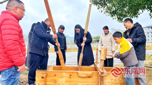 活动在客家山歌《涯屋下》、《红旗不倒江山永定》情景剧、摇滚《国际歌》等文艺汇演中拉开,吸引了周边上千名游客和当地群众前来赶集。年货集市内,七大特色区域琳琅满目,跨乡联建区汇聚全区各乡镇优质农特产品,打造“一乡一品”展销平台,满足消费者一站式采购需求。为营造浓厚年味,活动融入诸多非遗元素,“围炉煮茶”“土楼夯墙”“草鞋编织”体验区里,大伙儿亲手体验传统技艺。