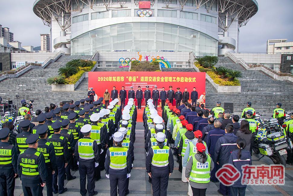 东南网龙岩2月2日讯(本网记者 马伊骅 通讯员 谢雯 董鹏 邱译莹)2026年春运工作今日拉开序幕,为确保2026年春运期间全市道路安全畅通、群众出行平安,2月2日,2026年龙岩市春运道路交通安全管理工作启动仪式在龙岩体育公园举行。