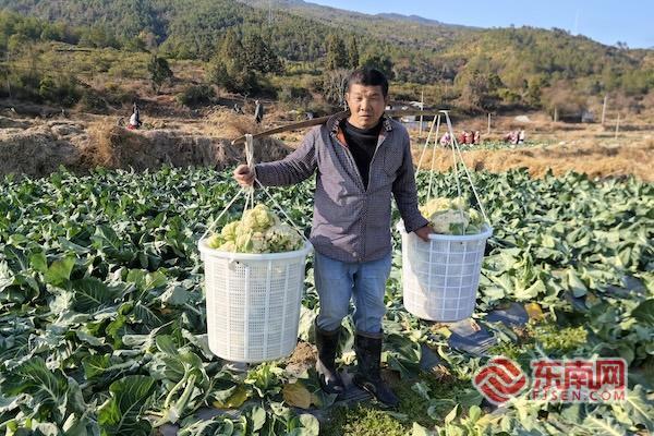 龙岩连城:冬闲田变身丰收田 鲜嫩花菜抢鲜上市迎新春