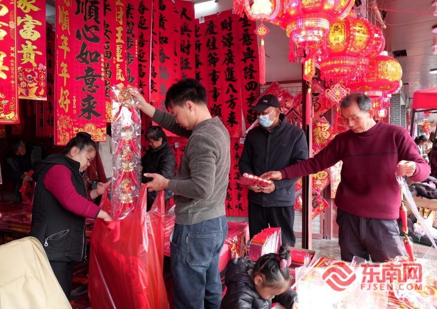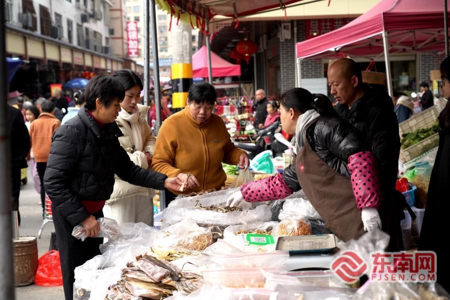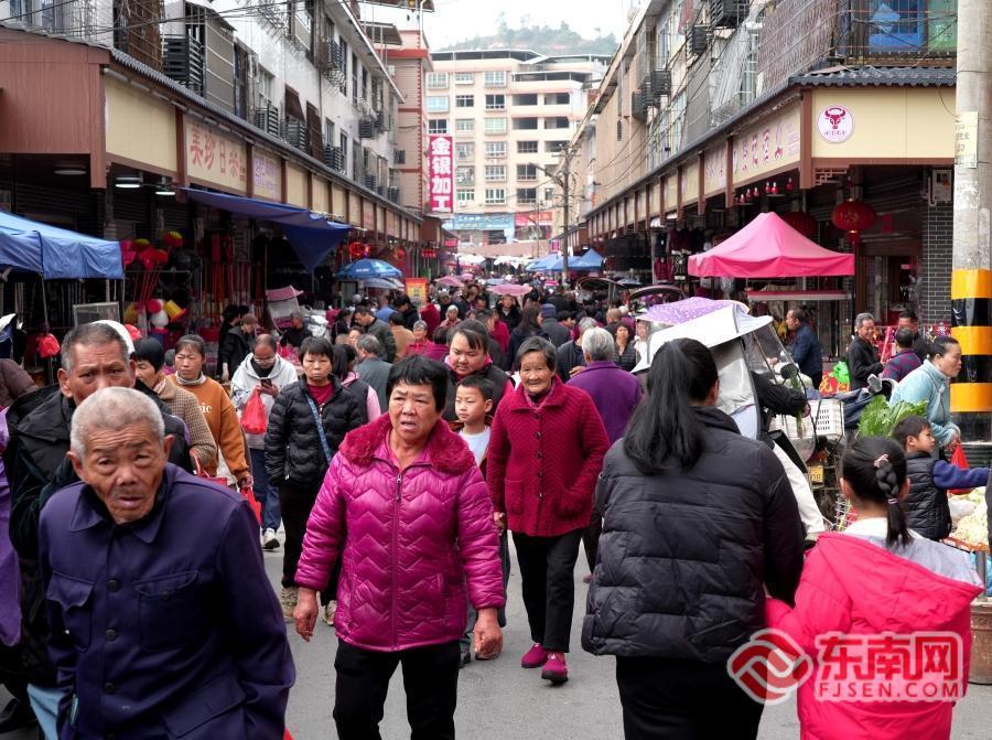 记者在现场了解到,在福建省龙岩市永定区下洋镇,每逢农历“三、八”为“圩日”,每逢圩日,就是小镇最具烟火气的时刻——集镇里吆喝声、讨价声此起彼伏,周边群众齐聚于此交易生产、生活用品,热闹的圩市通常要到下午三点才会散去。而每年农历十二月二十三到二十八的圩日,更是下洋圩一年之中最热闹的日子,外出游子总会提前返乡,就为了和家人一起赶这趟“大年圩”,把满满的年货、浓浓的牵挂一并带回家。