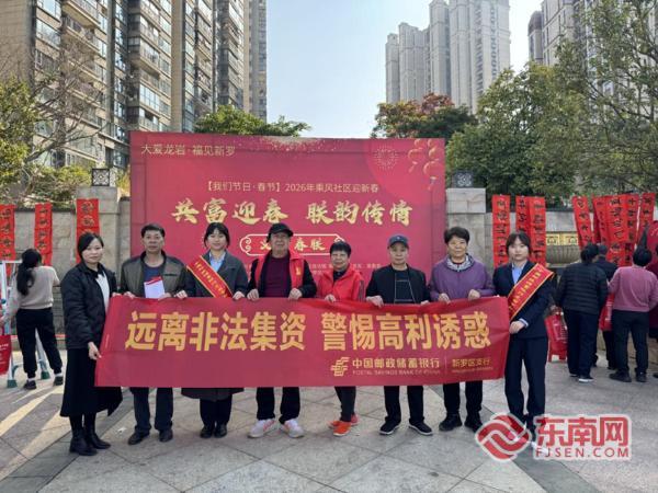 东南网龙岩2月14日讯 岁末辞旧岁,新春送福来。近日,邮储银行龙岩市新罗区支行携手新罗区乘风社区居委会,共同举办“手写春联送福至 防非宣传护民安”主题活动,将传统文化祝福与金融安全知识送至社区居民身边,用暖心服务为岁末年初的社区增添浓浓暖意。