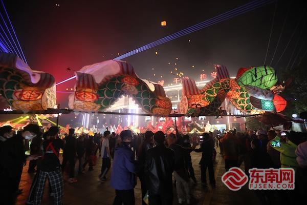 当巨龙行至镇政府大院,这场巡游迎来了最惊艳的时刻。千米长龙在大院中缓缓盘旋缠绕,首尾相应、环环相扣,先是绕着大院广场划出巨大的龙形弧线,而后层层叠绕盘旋,宛若一条蛰伏的巨龙在此蓄力腾跃,龙身的烛火连成一片金色光带,在夜色中熠熠生辉,气势磅礴到令人屏息。 大院内外人头攒动,成千上万的群众、游客围站四周,惊叹声、喝彩声此起彼伏,不绝于耳。“龙来了!快拍!”“一眼望不到头,太壮观了!”孩子们骑在父辈肩头,小手挥舞着欢呼雀跃,眼中满是新奇与欢喜;大人们踮脚远眺,手机、相机齐齐高举,争分夺秒记录下这震撼人心的瞬间。龙身起伏摇曳,烛火点点生辉,光影流转间,映照出一张张洋溢着喜悦与期盼的脸庞。恰在此时,数百盏电子孔明灯同步升空,点点微光汇聚成星河,与大院中盘旋的巨龙相映成趣,将古镇的夜空装点得如梦似幻,浪漫至极。 “太震撼了!从没见过这么长的龙!”来自三明的摄影爱好者谢大姐,提前数小时便抢占最佳机位,镜头追着龙身不停拍摄,不愿错过分毫精彩。香港游客刘志雄慕名而来,沉浸式感受着浓郁的民俗氛围,他满心欢喜道:“今天在姑田,我们不仅看到了千米大龙的威武,还感受了最地道的传统文化,最浓郁的元宵年味,这是一趟值得铭记的美好旅程。下次还要再来!”
