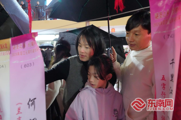现场设置的谜题难易兼顾、老少皆宜,既有涵盖传统诗词、历史典故的经典谜题,也有融入本地文旅、乡村振兴等元素的创新谜题,更有结合西方文化、现代生活的趣味谜题。市民们或驻足沉思、或凑在一处轻声探讨,细雨中欢声笑语混着雨滴轻敲伞面的声响,交织成热闹又温馨的元宵乐章。大家凭借智慧与积累,纷纷兑取奖品,脸上洋溢着收获节日惊喜的喜悦。