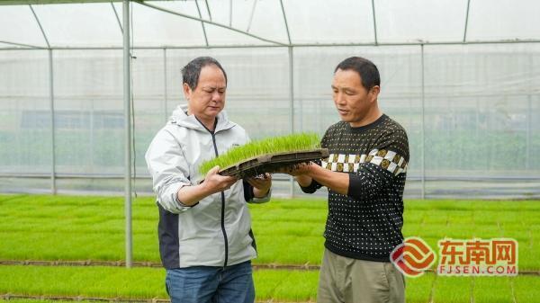 东南网龙岩3月6日讯(通讯员 陈敏 黄秋萍 记者 江雅萍)春回大地,万物复苏,福建龙岩永定田间地头一派繁忙景象。当前,永定区早稻育秧工作已进入关键阶段,农户抢抓农时、农技人员下沉一线,工厂化、智能化育秧全面铺开,为全年粮食生产筑牢根基。 眼下,永定区早稻育秧工作进入关键期,农户们在田间地头、育秧大棚里来回忙碌。钢架育秧大棚内,嫩绿秧苗破土而出、长势喜人;自动化育秧流水线上,铺土、精量播种、覆土、施肥一气呵成,昔日“面朝黄土背朝天”的传统育秧,如今变成高效有序的“工厂化生产”,一幅生机勃勃的春日农耕画卷在乡村田野间徐徐展开。