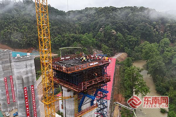 东南网龙岩4月10日讯(本网记者 马伊骅 通讯员 刘帅 陈荣香)近日,龙龙高铁武平至梅州段(福建段)项目建设现场传来捷报,随着最后一方混凝土精准入模,项目关键控制性工程——石湖溪特大桥(40+64+40)米连续梁8号主墩0号块顺利完成浇筑,标志着该大桥正式进入上部结构连续梁悬臂施工关键阶段,为后续主体工程快速推进及全线建设按下“加速键”。 据介绍,石湖溪特大桥位于武平县中赤镇上赤村,是龙龙高铁重点桥梁工程。该连续梁上跨石湖溪,主墩最大墩高44米。此次浇筑的8号主墩0号块,梁段长12米、梁顶宽12.2米、底宽6.3米、梁高4.6米。受地形条件限制,0号块施工无法采用落地式支架,需采用三角托架施工,加之墩身为变截面圆端形,施工难度大、风险高,是本标段的重难点工程。作为连续梁悬臂施工的“起始根基”,0号块质量直接决定后续挂篮悬臂浇筑、梁体线性控制等工序的顺利开展,对大桥整体结构稳定性与施工精度至关重要。