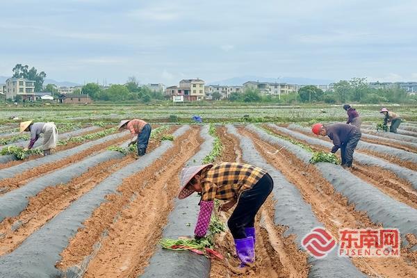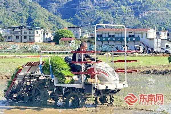 “237亩早稻全程机械化,效率比人工高几十倍,秧苗株距精准控制在30厘米×14厘米,成活率高、长势齐,丰收有底气!”农场负责人揭长林站在田埂上,望着规整稻田喜上眉梢。机械化插秧不仅解放人力,更让栽种标准统一,为早稻高产稳产打下坚实基础。 一手稳粮食生产,一手强特色产业。走进莲峰镇朱坊村甘薯种植基地,田间同样忙碌不停。农户们分工协作,整地、起垄、栽苗、覆土,动作麻利、配合默契,一道道工序有条不紊,一条条笔直垄沟延伸向远方,勾勒出特色产业春耕的生动图景。 该村创新“村集体+公司”模式,盘活流转土地280余亩,吸纳村民就近务工。“每天20至30人抢抓栽种,预计半个月完成全部种植。村集体占40%、公司占60%,收获后订单统一销售,彻底解决销路难题。”福建三匠农业负责人李尔荣说,模式让村集体增收、村民致富,农户种植更有干劲。