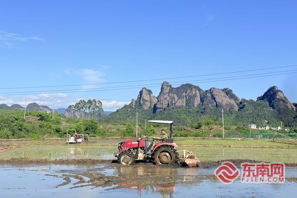 东南网龙岩4月10日讯(通讯员 黄水林 江钰婷 本网记者 林雯)仲春闽西,沃野铺翠。龙岩市连城县田间地头机声隆隆、人影穿梭,农户抢抓晴好春光,同步推进早稻机械化插秧与甘薯规模化种植,农机欢歌与劳作身影相映成趣,以科技赋能春耕、以产业筑牢根基,奏响一曲热气腾腾的乡村振兴春耕乐章。 在揭乐乡林翔家庭农场,连片稻田里农机轰鸣作业,一派火热景象。溶田机来回奔忙,翻耕泥土、平整田面,翻起层层泥浪;高速插秧机紧随其后,匀速前行、精准栽插,一行行嫩绿秧苗整齐扎进水田,横竖成线、疏密均匀。短短半天,连片稻田便披上翠绿“新装”,生机满眼。