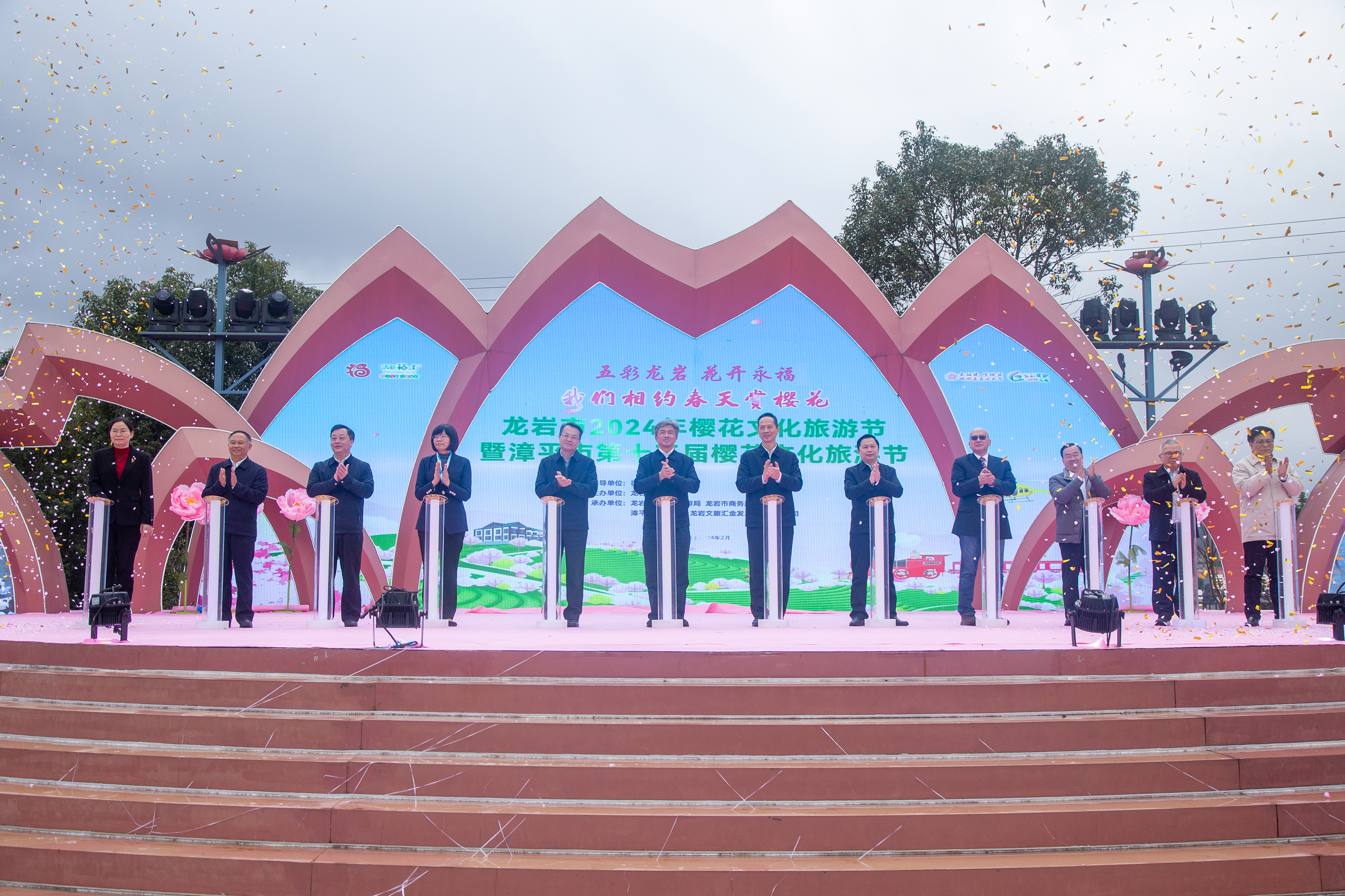 开幕式文艺表演 此外,活动还邀请了上海、广州、厦门、漳州等对口合作文旅部门领导,省内外重点茶企、茶商、驻外商会代表,省内重点旅行商、旅行社负责人等嘉宾参加。 此次大会以“五彩龙岩 花开永福·我们相约春天赏樱花”为主题,由福建省文化和旅游厅指导,龙岩市人民政府主办,龙岩市文化和旅游局、龙岩市商务局、漳平市人民政府、龙岩文旅汇金发展集团有限公司承办。